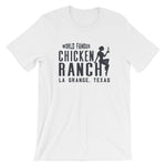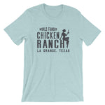 This Chicken Ranch Texas t-shirt is comfortable and flattering for both men and women.