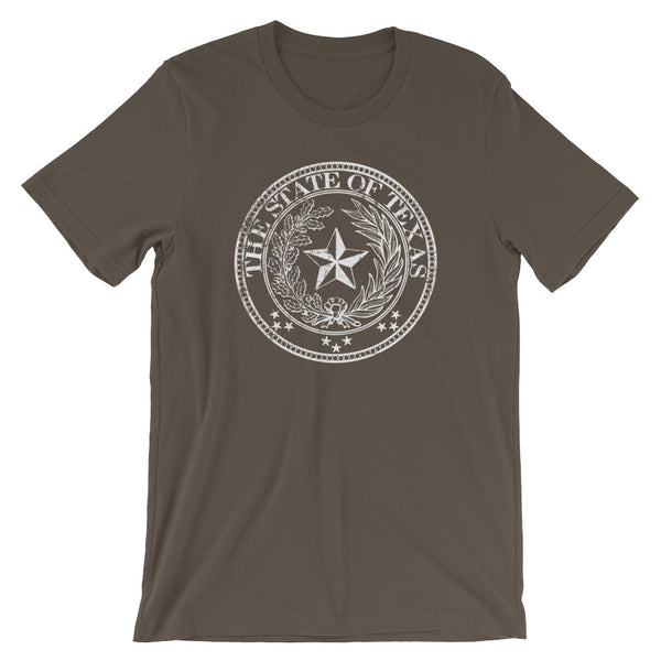 We present the Seal of Texas...on a t-shirt. Slightly distressed. Any questions? Soft and lightweight, with the right amount of stretch. It's comfortable and flattering for both men and women....