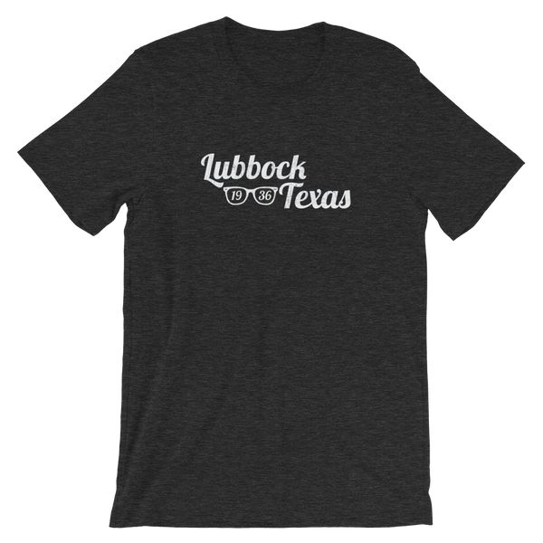 Buddy Holly (Charles Hardin Holley) was born in Lubbock, TX on September 7, 1936. This shirt is a tribute to both Holly and Lubbock.